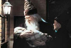 Minerva y Albus Dumbledore dejando a Harry en la casa de los Dursley